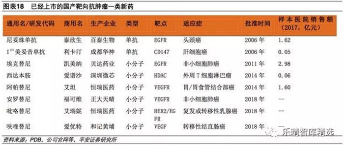 2018年審批審批速度加快,新批準上市9個靶向(xiàng)抗癌藥;