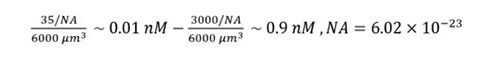 利用我們之前算出的一些數字,單個外泌體中有個35-3000個蛋白,在受體細胞中濃度爲0.01-0.9nM,以及Dan老師講的一個公式配體與受體結合的概率