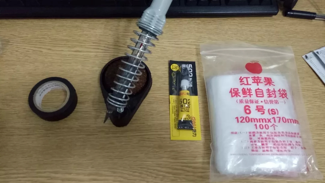 膠帶、電烙鐵、502膠水、自封袋
