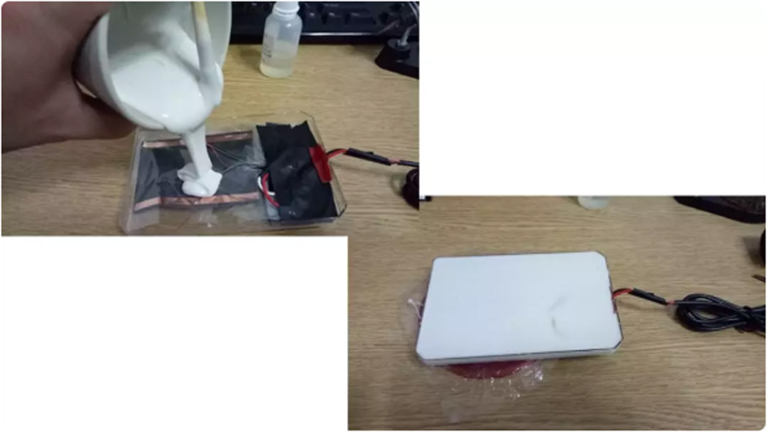 第八步:使用塑封袋包整個加熱闆,并用膠帶完整纏繞
