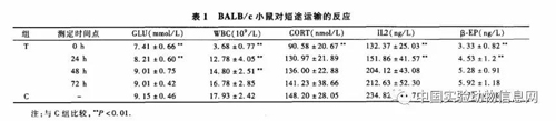 小鼠運輸後(hòu)各個指标的變化[4]