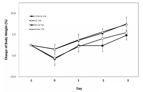 不可以,需要給予足夠的适應期來從運輸應激中恢複。爲了檢查動物體重從運輸應激中恢複的時(shí)間,研究人員對(duì)小鼠和大鼠的體重進(jìn)行了同齡測定,并對(duì)體重變化作出描述。研究中的小鼠到達目的地後(hòu)立即轉移至具有适宜溫度和濕度的飼養設施,小鼠體重在第二天開(kāi)始恢複,三天後(hòu)幾乎就(jiù)可以達到之前的正常水平了[6]。