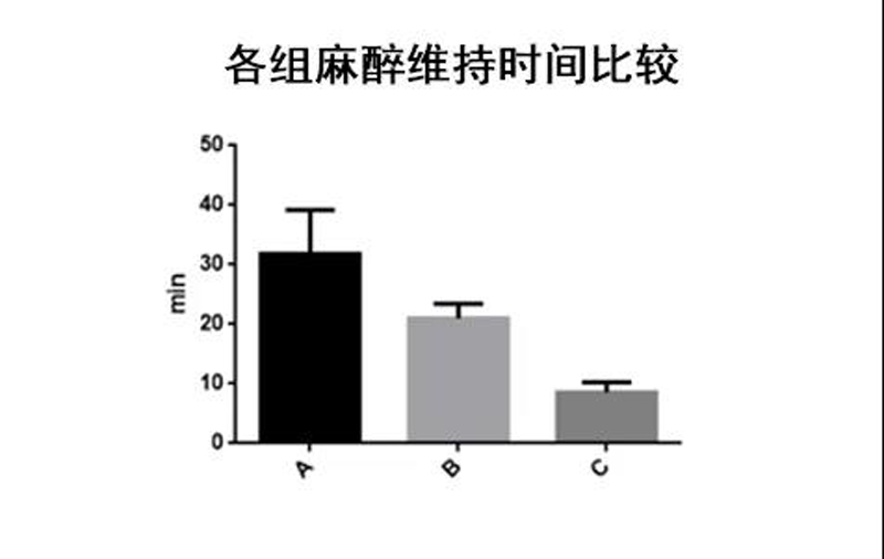 各組小鼠麻醉成(chéng)功率爲100%(15/15),麻醉維持期的麻醉深度較好(hǎo),無疼痛反射(手指按壓小鼠後(hòu)肢末端無疼痛反應)